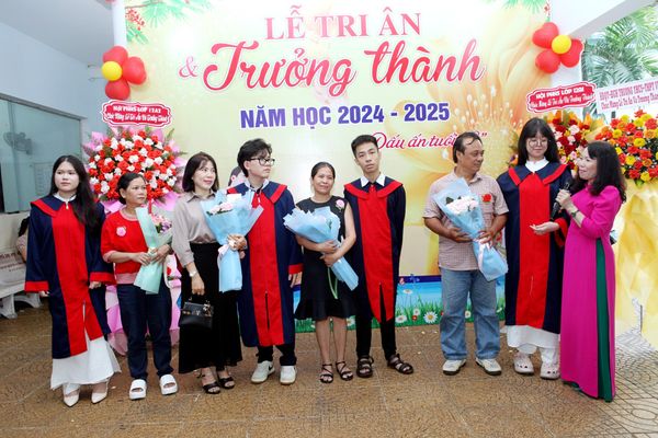 Các em học sinh lớp 12 đã gửi lời cảm ơn chân thành đến thầy cô – những người lái đò tận tụy, và đến cha mẹ – những người luôn âm thầm đồng hành và hy sinh. Mỗi lời nói, mỗi cái ôm, mỗi giọt nước mắt trong buổi lễ đều là minh chứng cho sự trưởng thành thật sự của các em.